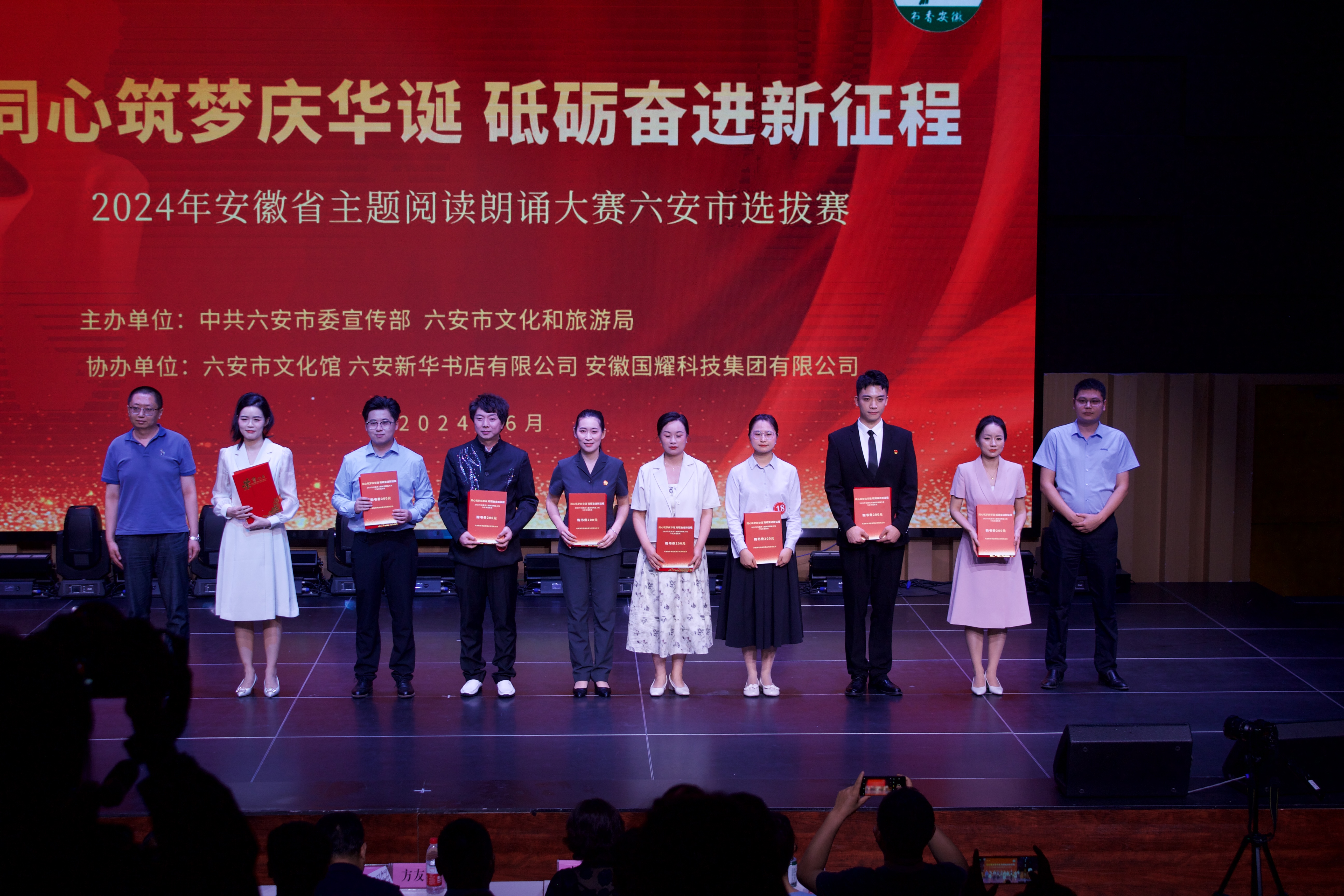 凝心聚偉力,奮進(jìn)譜華章。本次“同心筑夢慶華誕 砥礪奮進(jìn)新征程”2024年安徽省主題閱讀朗誦大賽六安市選拔賽,牢牢把握習(xí)近平新時(shí)代中國特色社會(huì)主義思想,朗誦內(nèi)容積極向上、催人奮進(jìn),展現(xiàn)了六安市人民奮發(fā)昂揚(yáng)的精神風(fēng)貌。七十五載偉大征程,百年初心歷久彌堅(jiān)。希望以此次活動(dòng)為契機(jī),進(jìn)一步推動(dòng)書香六安建設(shè),推廣全民閱讀,用書香涵養(yǎng)文明中國,為祖國75周年華誕深情獻(xiàn)禮。